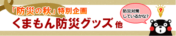 防災の秋の特別企画として、「くまもん防災グッズ」他のご紹介です。