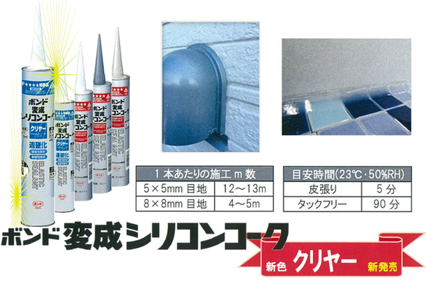 コニシボンドより、シーリング材「変成シリコン」に、クリヤーが、新色発売致しました。
