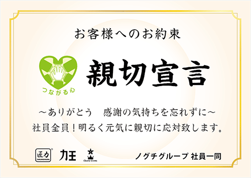 弊社のスローガン「親切宣言」 – お客様へのお約束 –