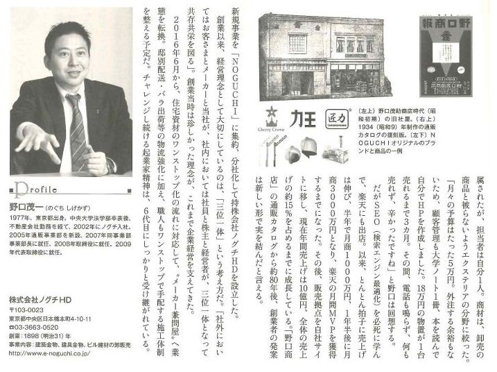 ダイヤモンド社出版の「レガシーカンパニー2」に弊社が掲載されました。 弊社代表取締役社長野口の語りと共に、「伝統と革新」のドラマが紹介 されておりますので、皆様是非ご覧になって下さい。