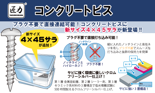 匠力「コンクリートビス徳用箱」ラインナップに、